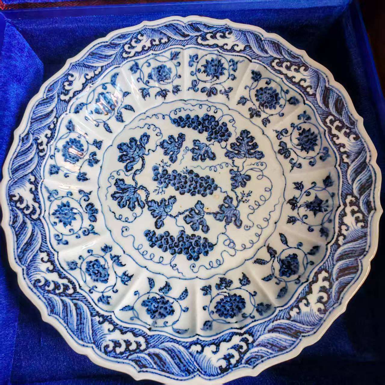 明永乐青花葡萄纹菱口盘