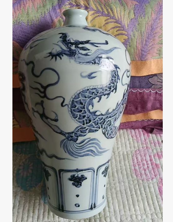 国宝雍正青花瓷鸳鸯戏水双龙耳赏瓶