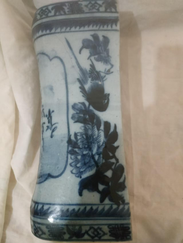 清代青花山水人物纹方瓶(琮式瓶)