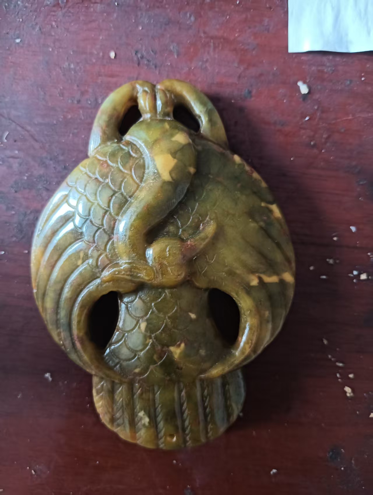和田玉透雕双螭龙纹佩,