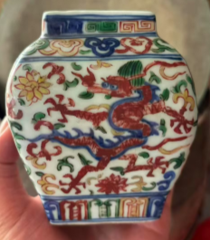 铜胎掐丝珐琅(景泰蓝)双龙耳六方瓶