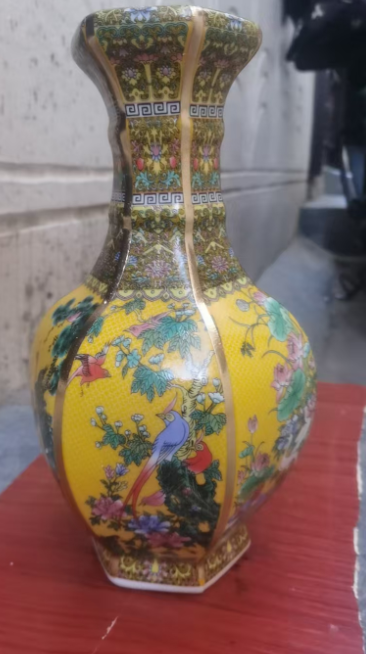 珐琅彩六方花鸟瓶