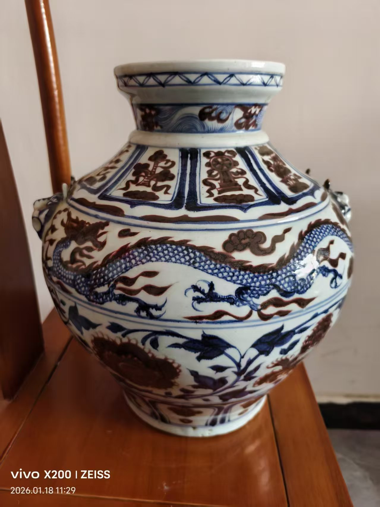 国宝雍正青花瓷鸳鸯戏水双龙耳赏瓶