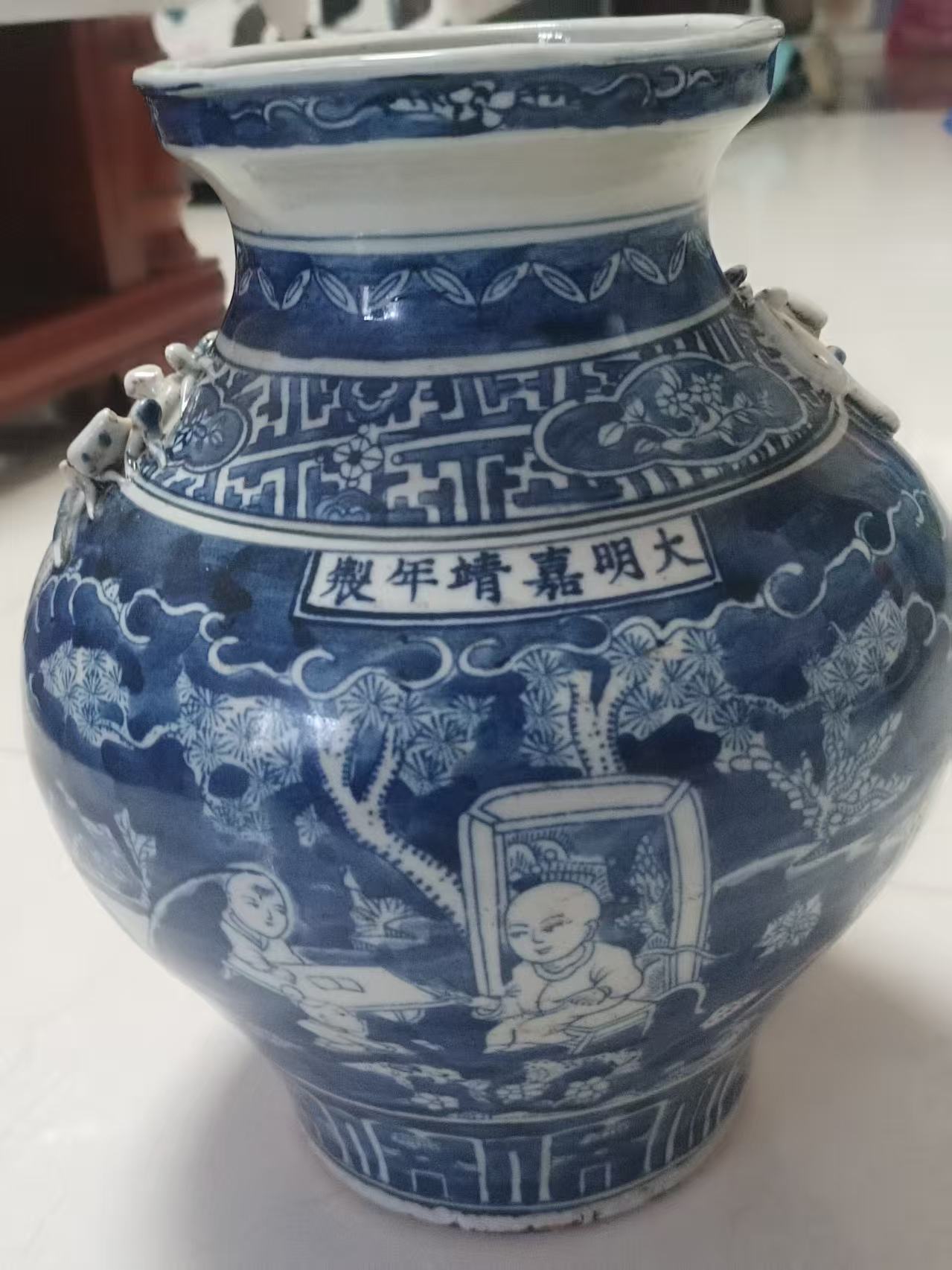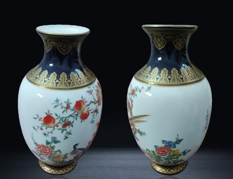 国宝雍正青花瓷鸳鸯戏水双龙耳赏瓶