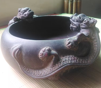 双螭龙紫砂盂