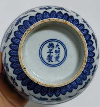 明宣德 青花外西番莲纹内折枝花卉纹大碗