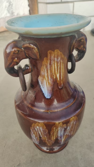 酱釉瓷象耳瓶