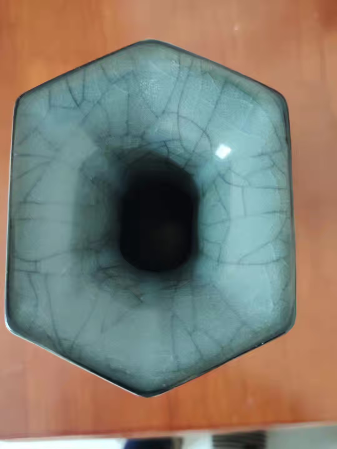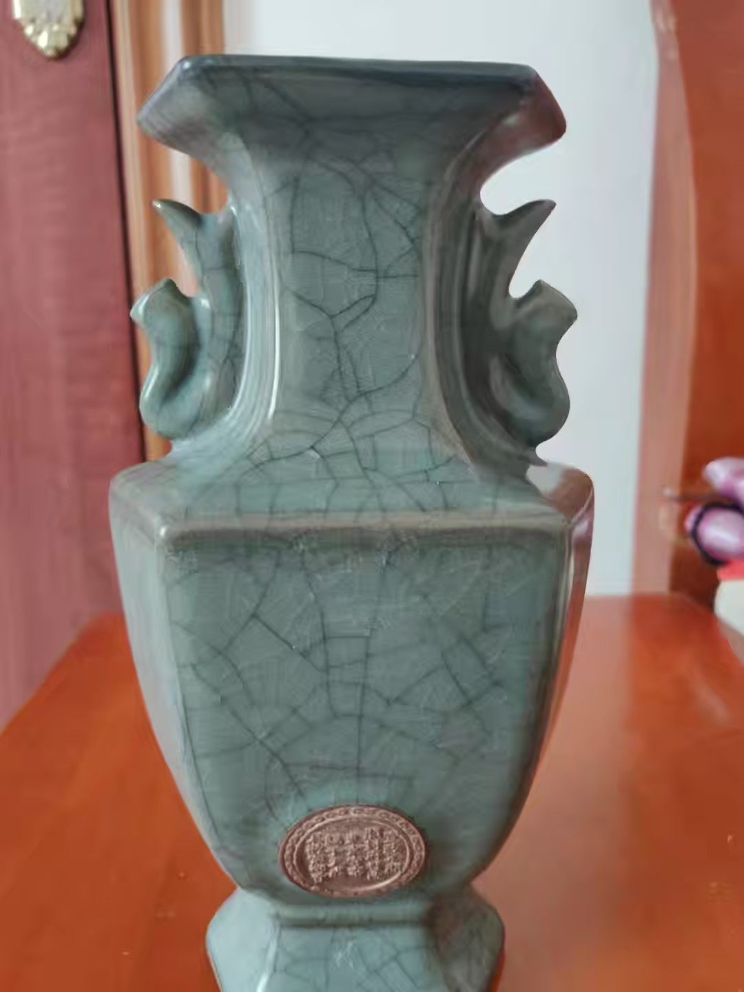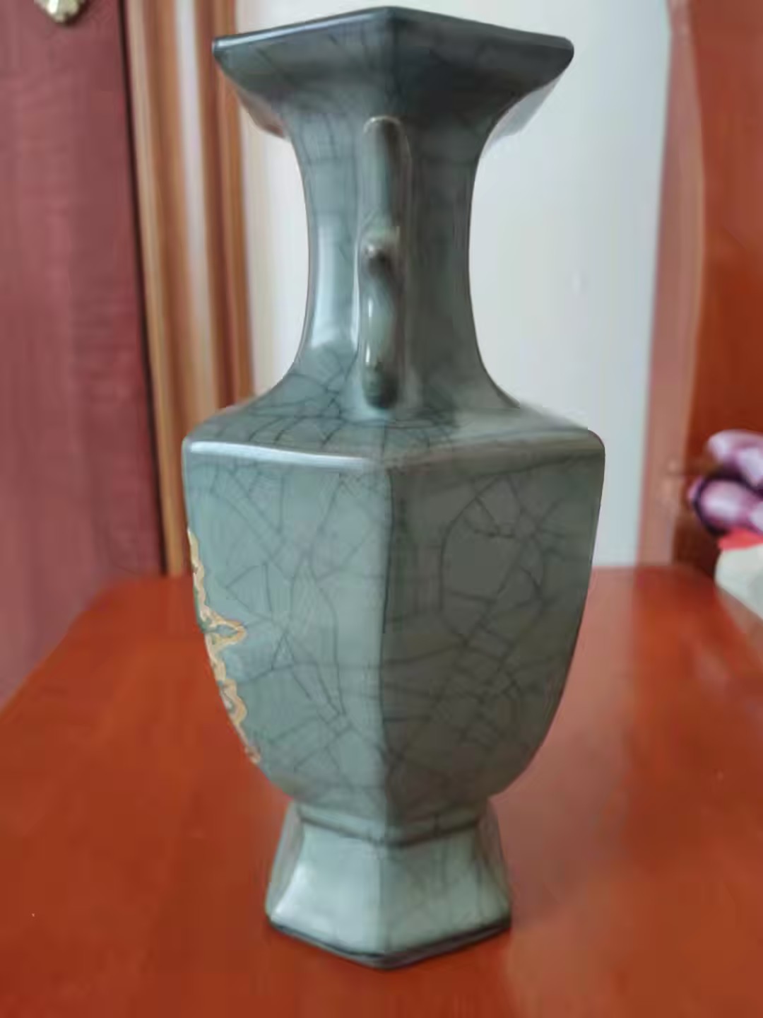 宋代官窑天青釉魚耳流金六方尊花瓶