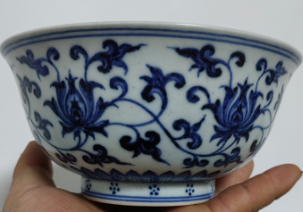 明宣德 青花外西番莲纹内折枝花卉纹大碗
