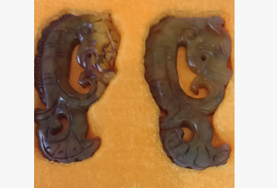 古岫玉龙形佩一对