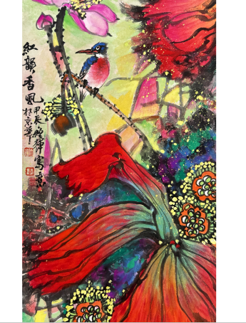 荷花水彩(观莲图)