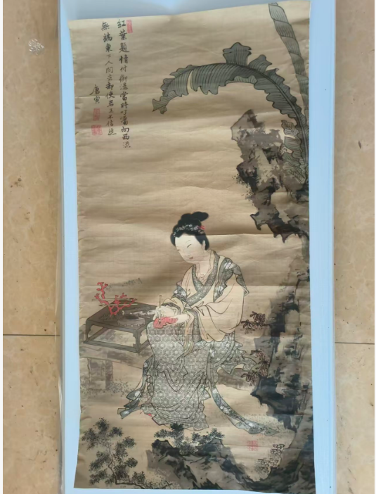 唐伯虎红叶仕女图,尺寸:长69公分,宽35公分