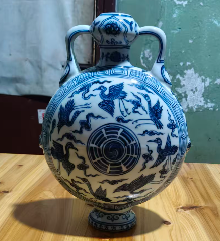 青花仙鹤八卦纹抱月瓶