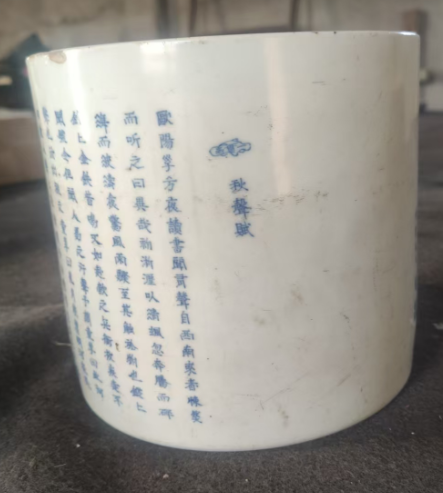 青花《秋声赋》诗文笔筒