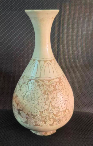 磁州窑白釉剔刻花玉壶春瓶