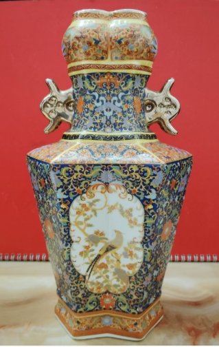 珐琅彩六方花鸟瓶