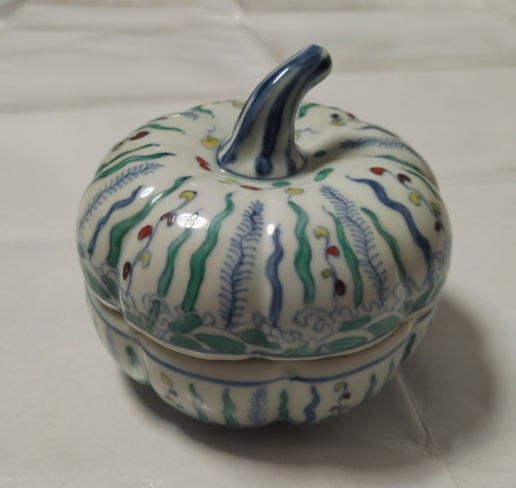 明成化官窑青花五彩仿生南瓜形盖盒