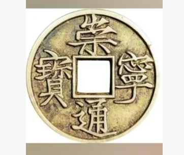 宋崇宁通宝折十大字高走通版白铜母币。材质是白铜。直径是。3.54cm。厚度是0.26cm,重量是12.3g