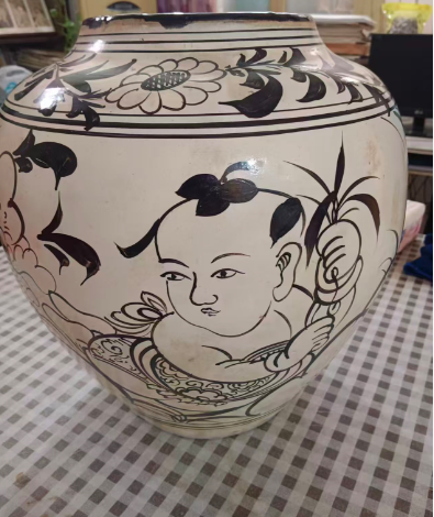 元代磁州窑黑釉花陶罐