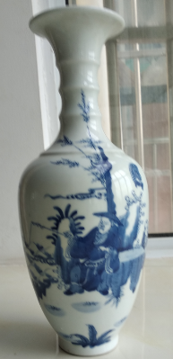 青花竹节颈人物纹撇口瓶