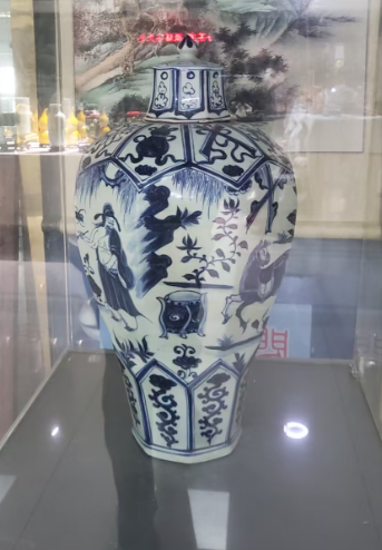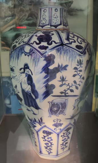 元青花人物杨家将八棱带盖梅瓶