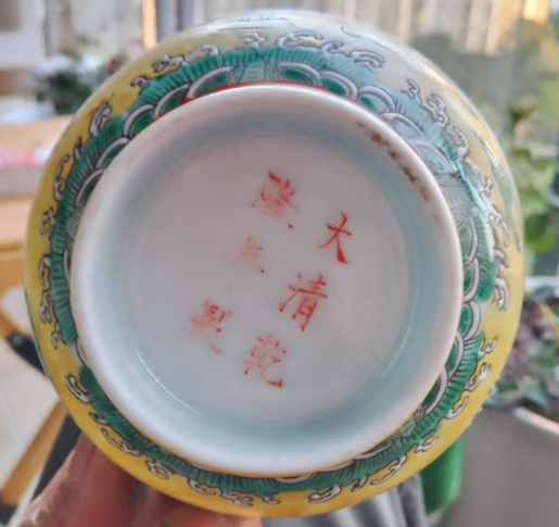 大清乾隆年制黄底绿龙碗