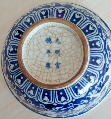 明代宣德官窑青花留白龙纹碗