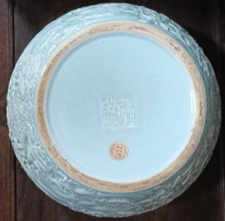 影青釉浮雕龙纹大缸