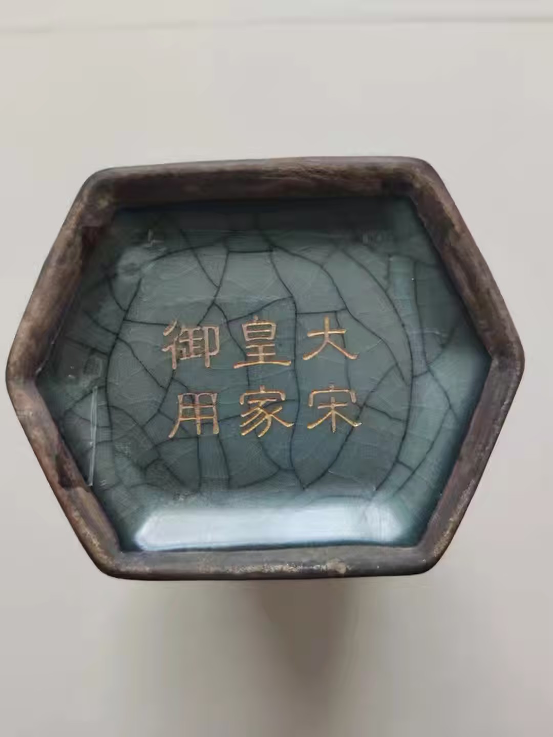 宋代官窑天青釉魚耳流金六方尊花瓶