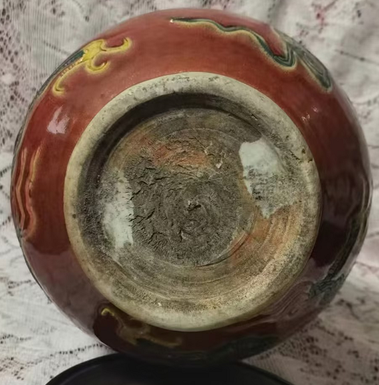 元代瓷器霁红釉兽耳雕刻龙凤纹盘口玉壶春瓶