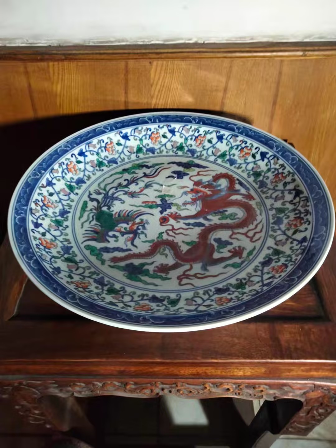 青花斗彩龙凤纹大盘