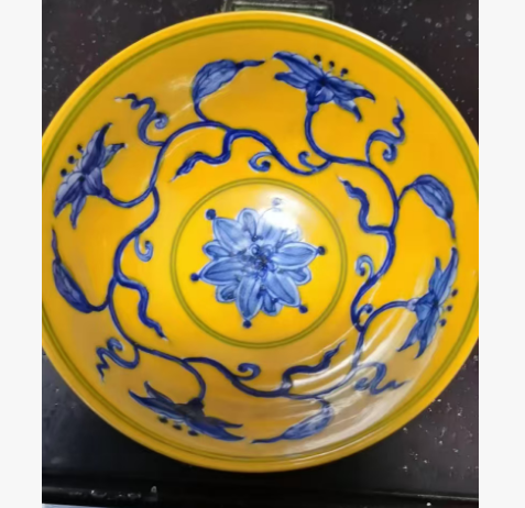 成化黄柚青花秋葵大碗