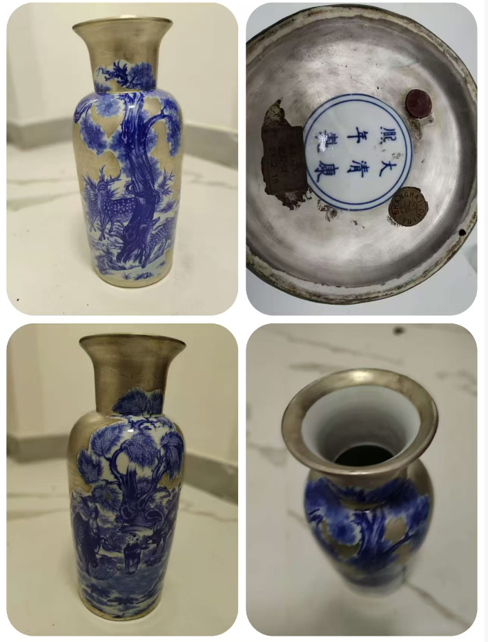 国宝雍正青花瓷鸳鸯戏水双龙耳赏瓶