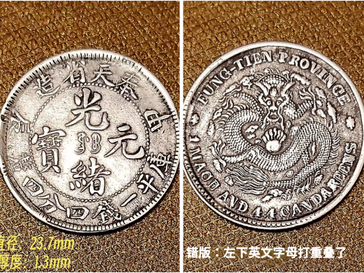 奉天省造甲辰光绪元宝库平一钱四分四厘银币(贰角银毫)错版币